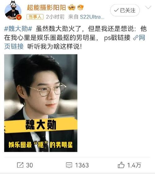 最近娱乐圈可是热闹非凡呢!魏大勋这个名字,估计很多人都已经如雷贯耳了吧。这不,他又爆出了一个大瓜,让粉丝们兴奋不已。那么,魏大勋最近的爆料新闻是什么呢?让我们一起揭开这个神秘的面纱吧!